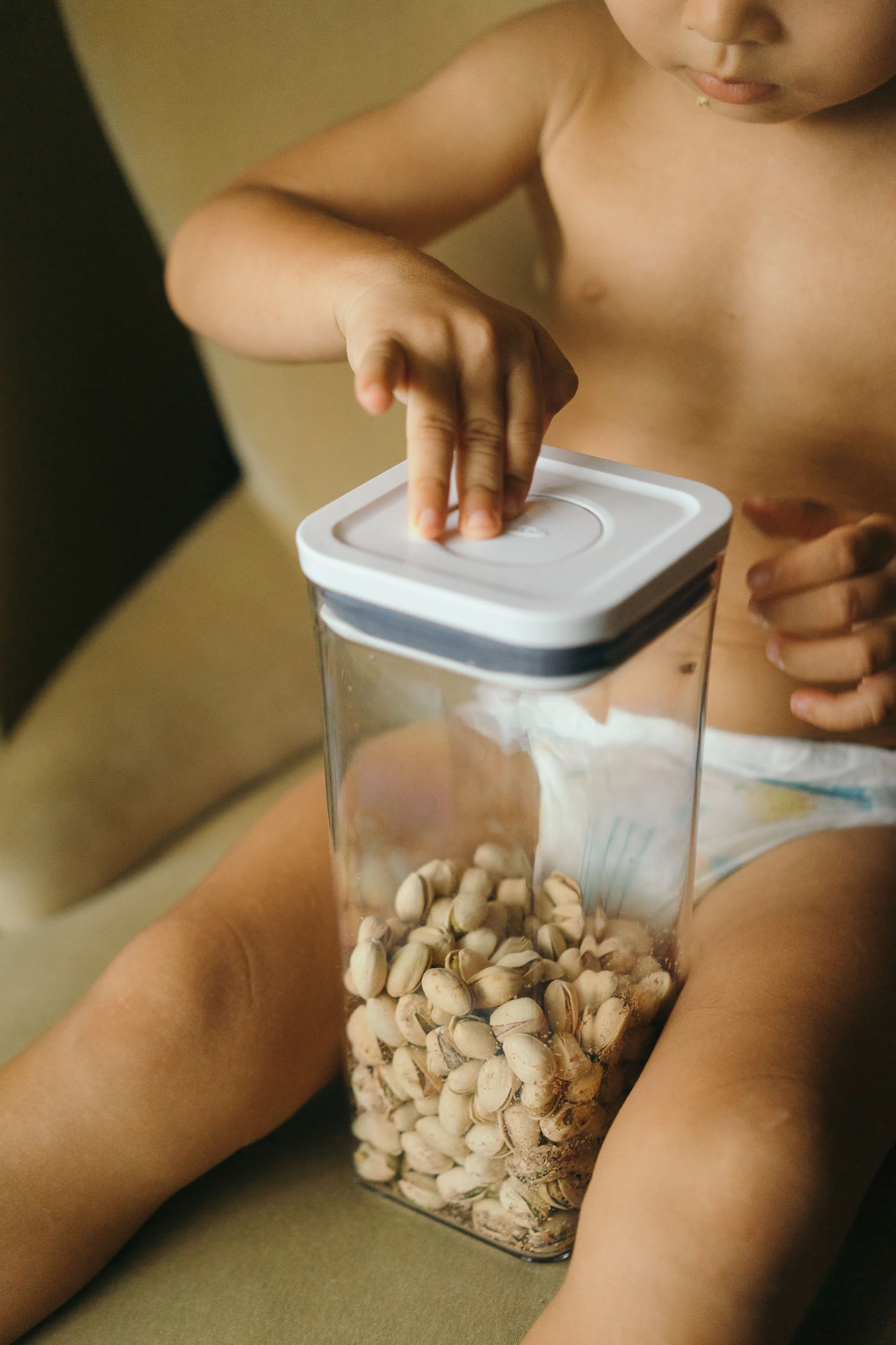 我發現他們只要可行,幾乎不會在冰箱或櫥櫃留下任何有外包裝的痕跡,大至白米小至泡打粉,用能夠透視食材的儲存盒,既能夠保持開關時最少量的空氣出入,並能輕易將他們移動至不同地方,不會有放在裡頭就比較難取得的問題。